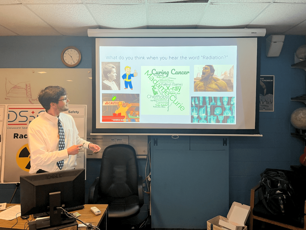 DSpOC outreach coordinator TJ Tomaszewski recently gave a public, 70-minute presentation on radiation and radioactivity at Mount Cuba Astronomical Observatory (MCAO). This discussion covered the basics of the electromagnetic spectrum and an explanation of radiation in the form of waves and particles. It ended with an expanded demo of measuring radiation with a series of Geiger counters and the wide applications of ionizing radiation.
