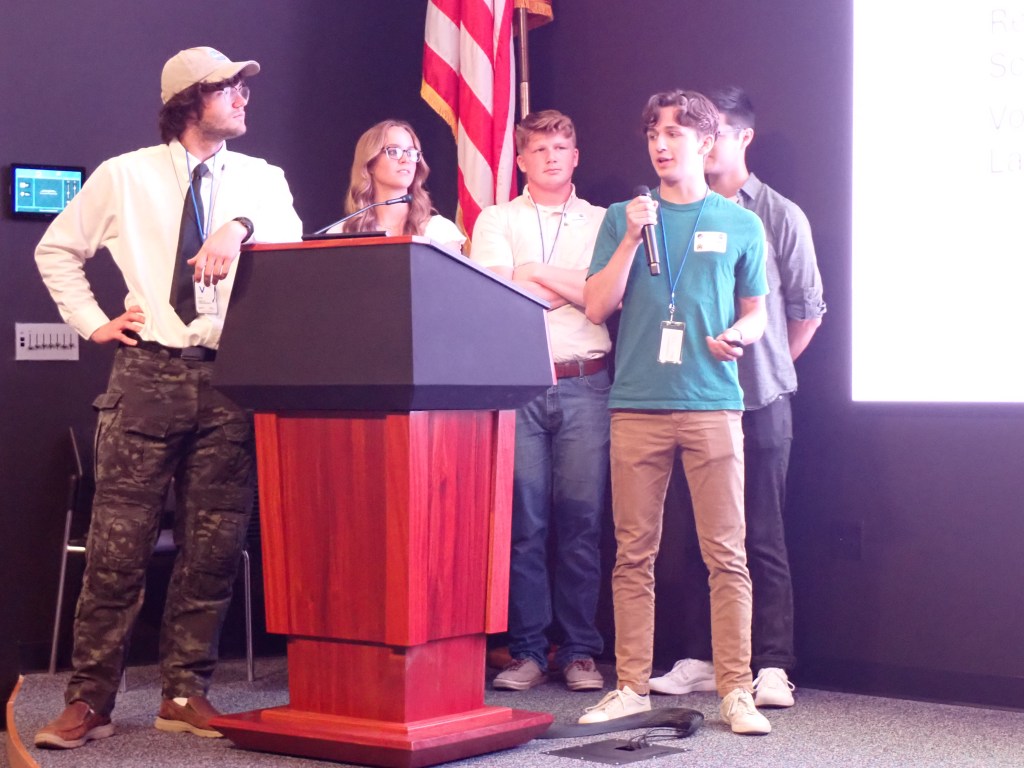 Once the rocket was ready for flight, the following week consisted of tours and presentations. While being led through the base, teams learned about the types of missions Wallops supports. Each team gave a short presentation on their respective experiment. UDIP-4 students Timothy “TJ” Tomaszewski, Amanda Swenson, Matthew Ward, and Alex Bruce were heavily involved in the development of the sounding rocket mission, so each talked for a few minutes on their subsystem. Jonathan Rosado stepped in for Connor McCleery during the mechanical portions of the presentation.